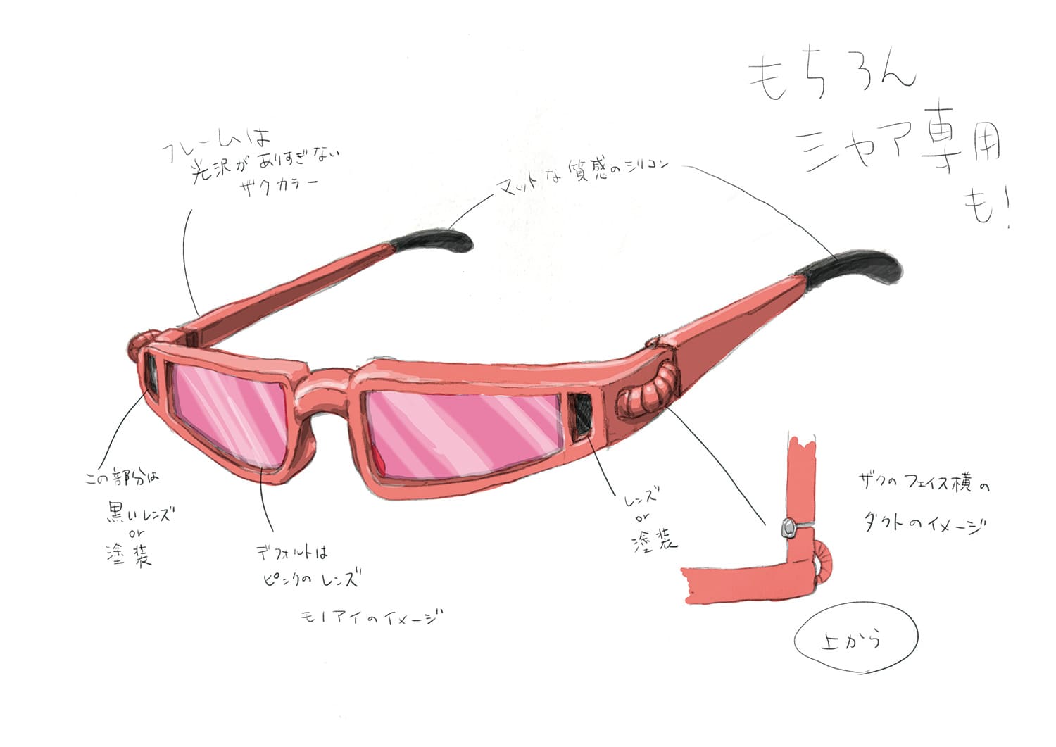 審査員コメント:量産型ザクとシャア専用の2つのアイデアがあり、今回はシャア専用を選びましたが上手くモビルスーツの形状をメガネに落とし込めています。