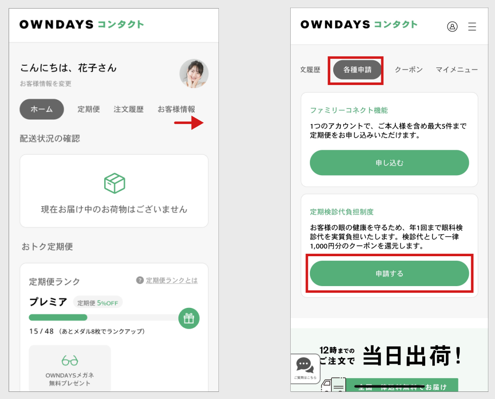 ※ご利用には、OWNDAYSコンタクトでの1回以上のご購入履歴が必要です。
