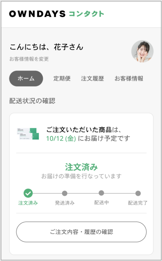 ご注文後のマイページホームのイメージ画像は以下の通りです。