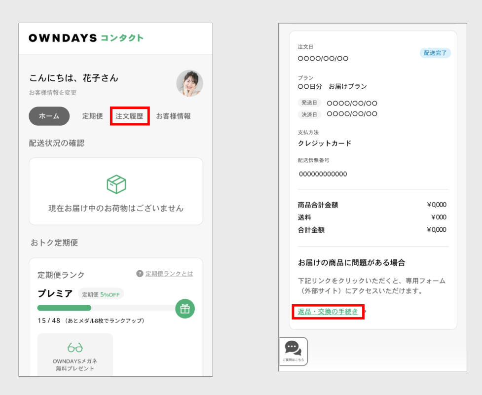 度数交換保証の利用方法については、マイページ > 注文履歴から交換をご希望の注文履歴を表示してください。