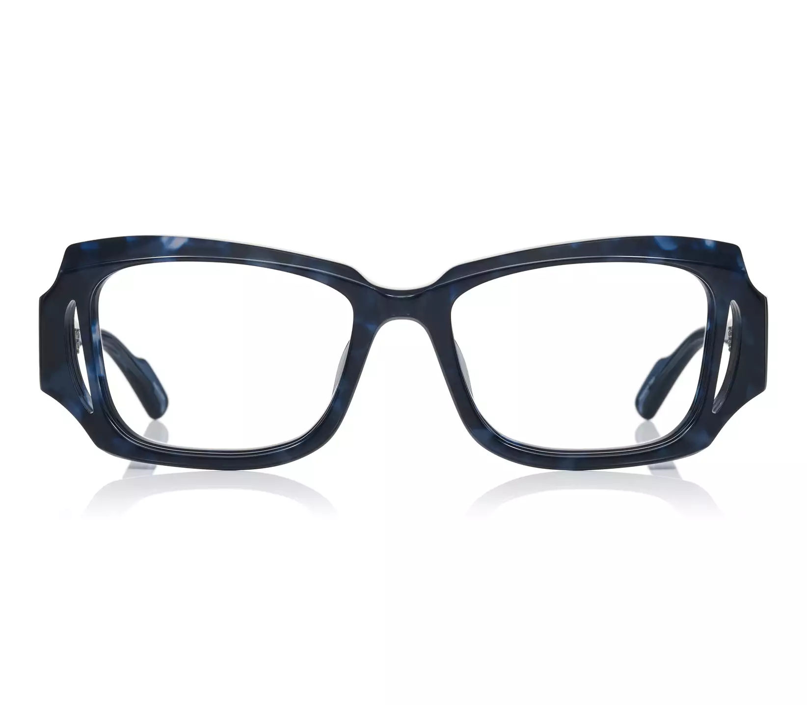 7.0mm厚のアセテート生地を使用した存在感のあるフレーム。 フロントとテンプルには窓のようなカットが入っており重厚感を感じつつも 軽やかさのあるデザインです。