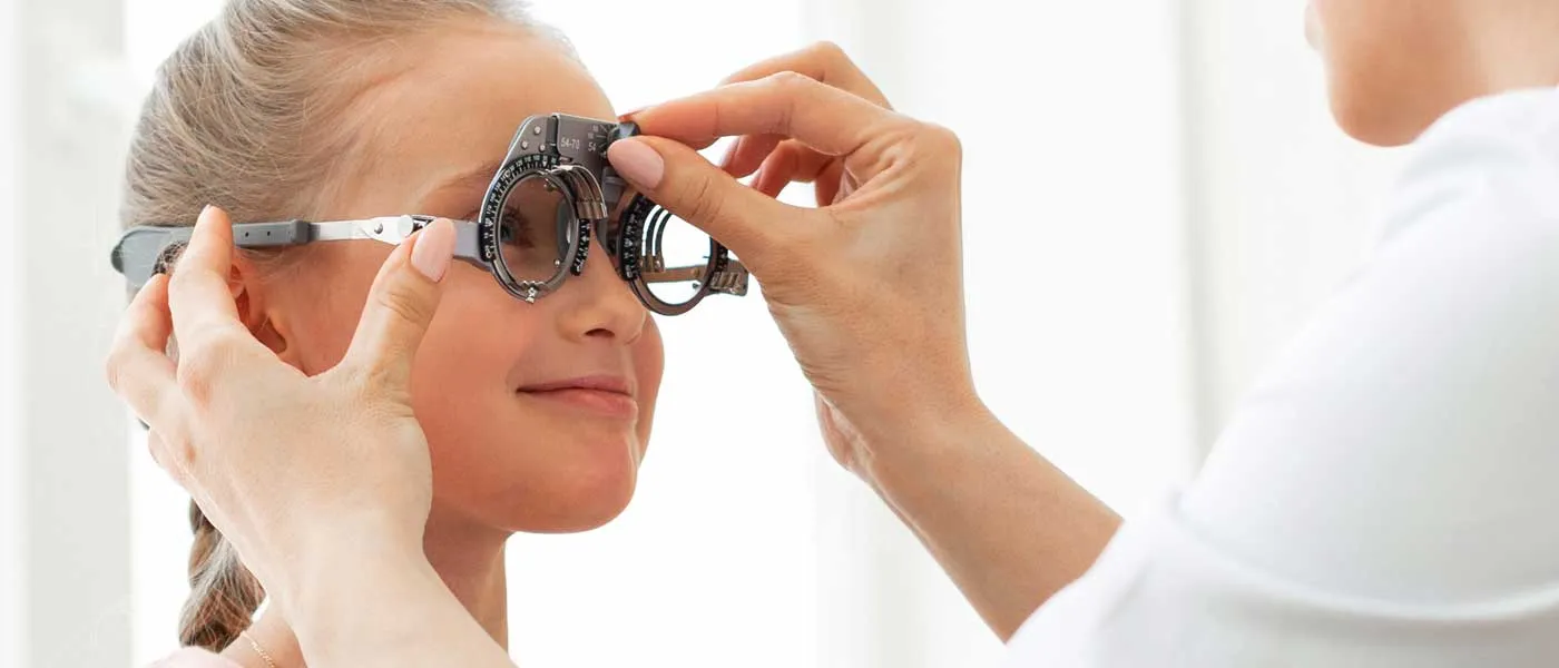 学校で行われた視力測定で視力矯正が必要という結果が出た場合、まず眼科を受診して視力が低下した原因の特定と治療方法の確定を行いましょう。目の疲労により一時的に視力が落ちている場合や、視力低下の原因に眼科疾患が隠れている可能性もあります。眼科では点眼剤などを使って正確な屈折状態を調べ、近視や遠視、乱視の程度を判断することができます。メガネが本当に必要なのかを判断するためにも、まずは眼科で詳しく目の状態を検査する必要があります。