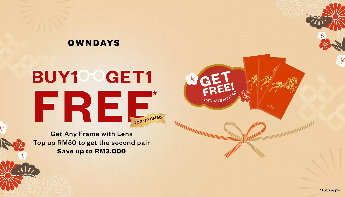 OWNDAYS CNY : Buy 1 frame with lenses & top up RM50 to get the 2nd pair FREE! + Exclusive Ang Pao!