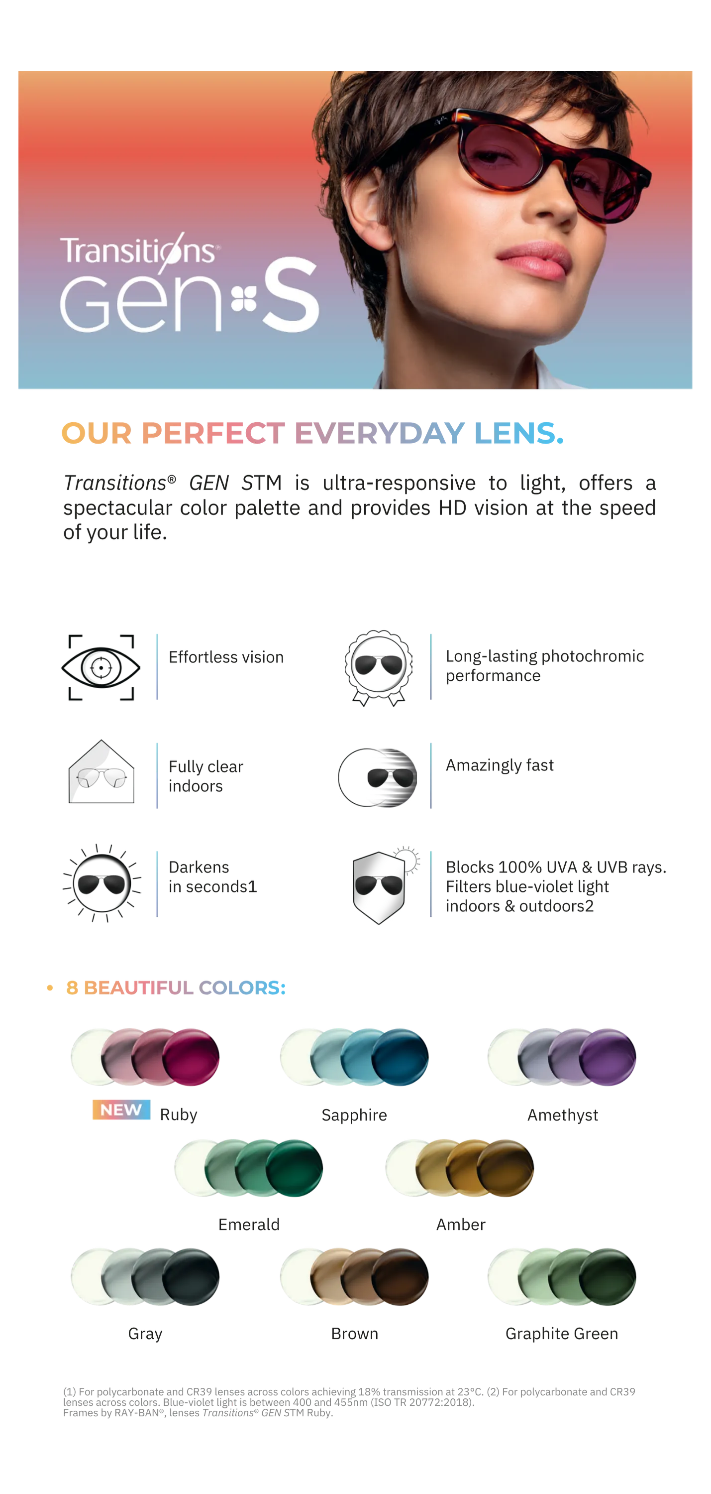 Protect your eyes in style with the latest Transitions® GEN S™ lenses, made to fit your everyday life.