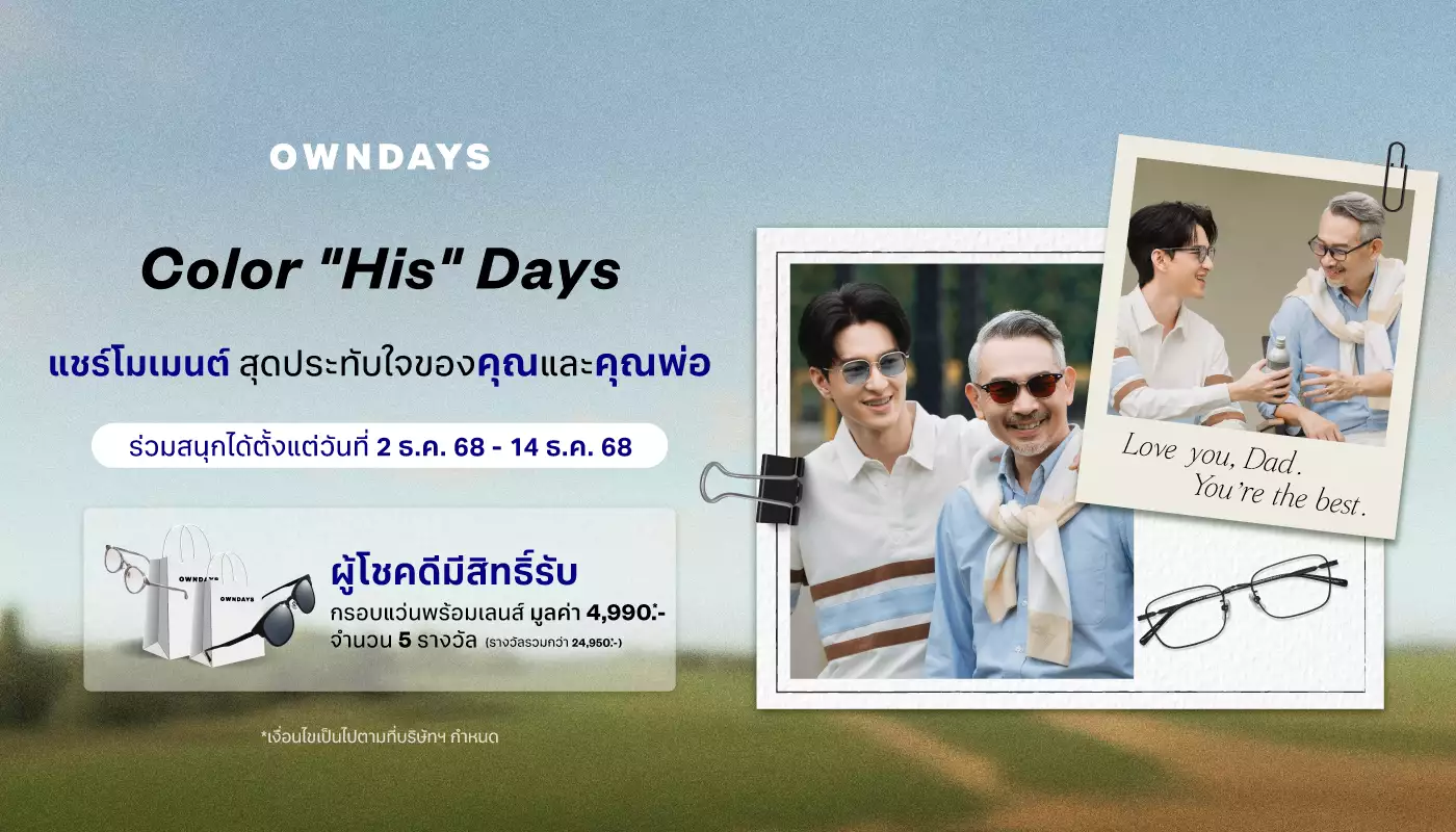 • กดไลค์ กดแชร์ ตั้งค่าเป็นสาธารณะ พร้อมติดแฮชแท็ก #OWNDAYSColorHisDays #ColorHisDays #OWNDAYSThailand
