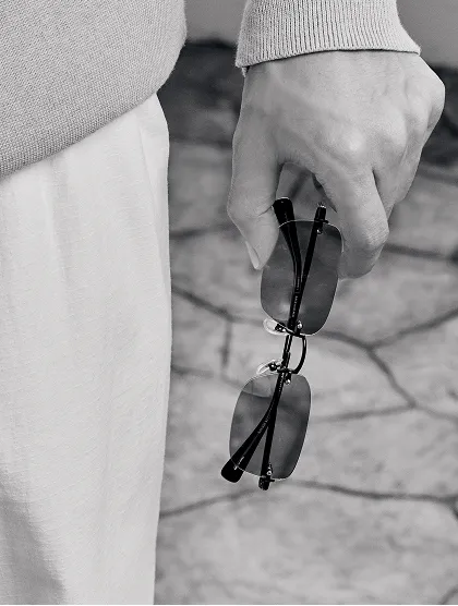 แว่นไร้กรอบทรงสี่เหลี่ยมสไตล์เนิร์ดชิค ให้ลุคสดใหม่ไม่ซ้ำใคร มาพร้อมเลนส์เปลี่ยนสี ใสเคลียร์เมื่ออยู่ในร่ม และเข้มขึ้นเมื่ออยู่กลางแจ้ง เสริมอะไหล่สีดำโดดเด่นที่สะพานแว่นและขาแว่น เติมเต็มความเรียบเท่สไตล์มินิมอลได้อย่างลงตัว