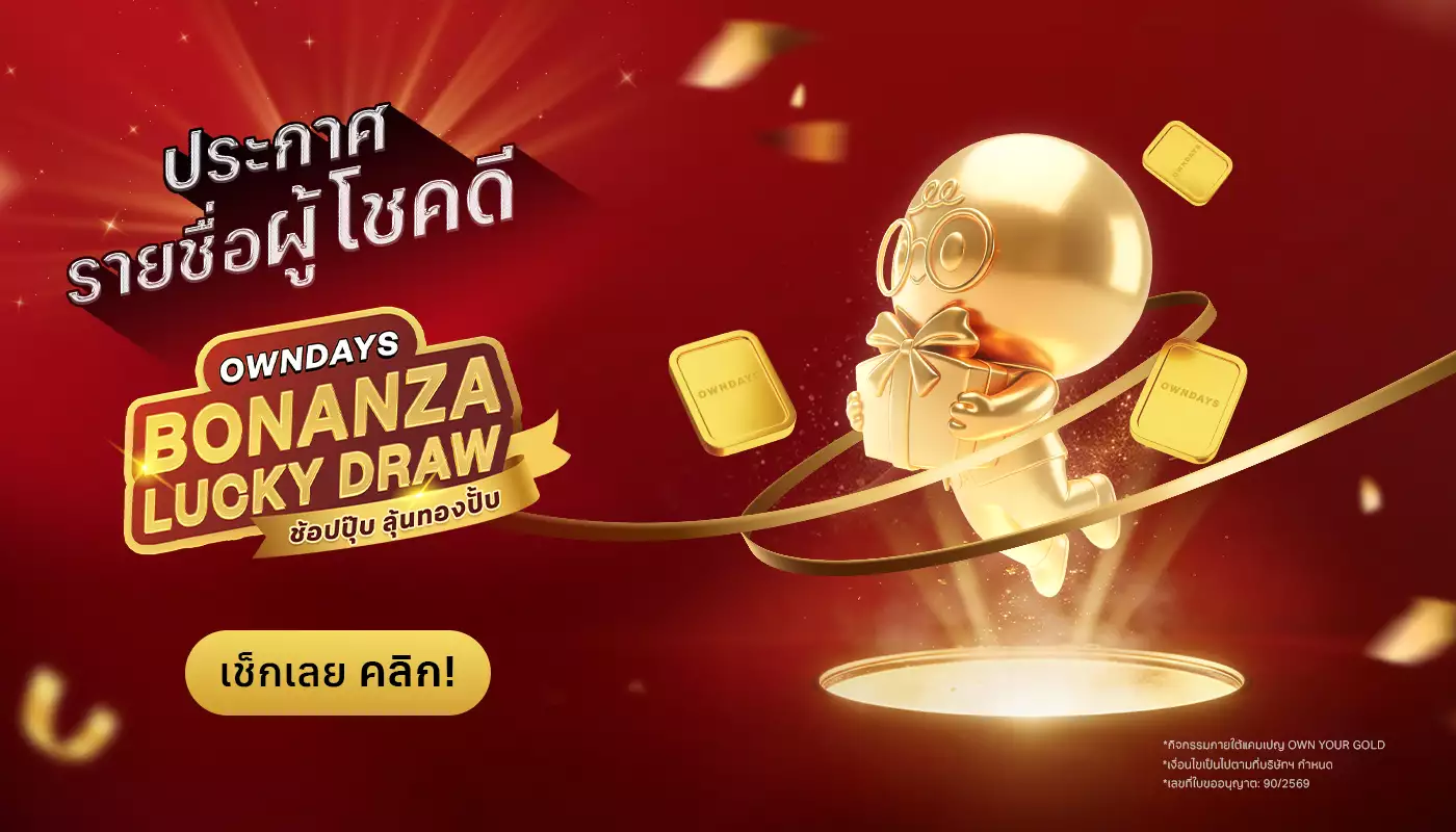 ประกาศรายชื่อผู้โชคดี OWNDAYS BONANZA LUCKY DRAW แจกทองคำแท่ง รวมมูลค่ากว่า 1 ล้านบาท!
