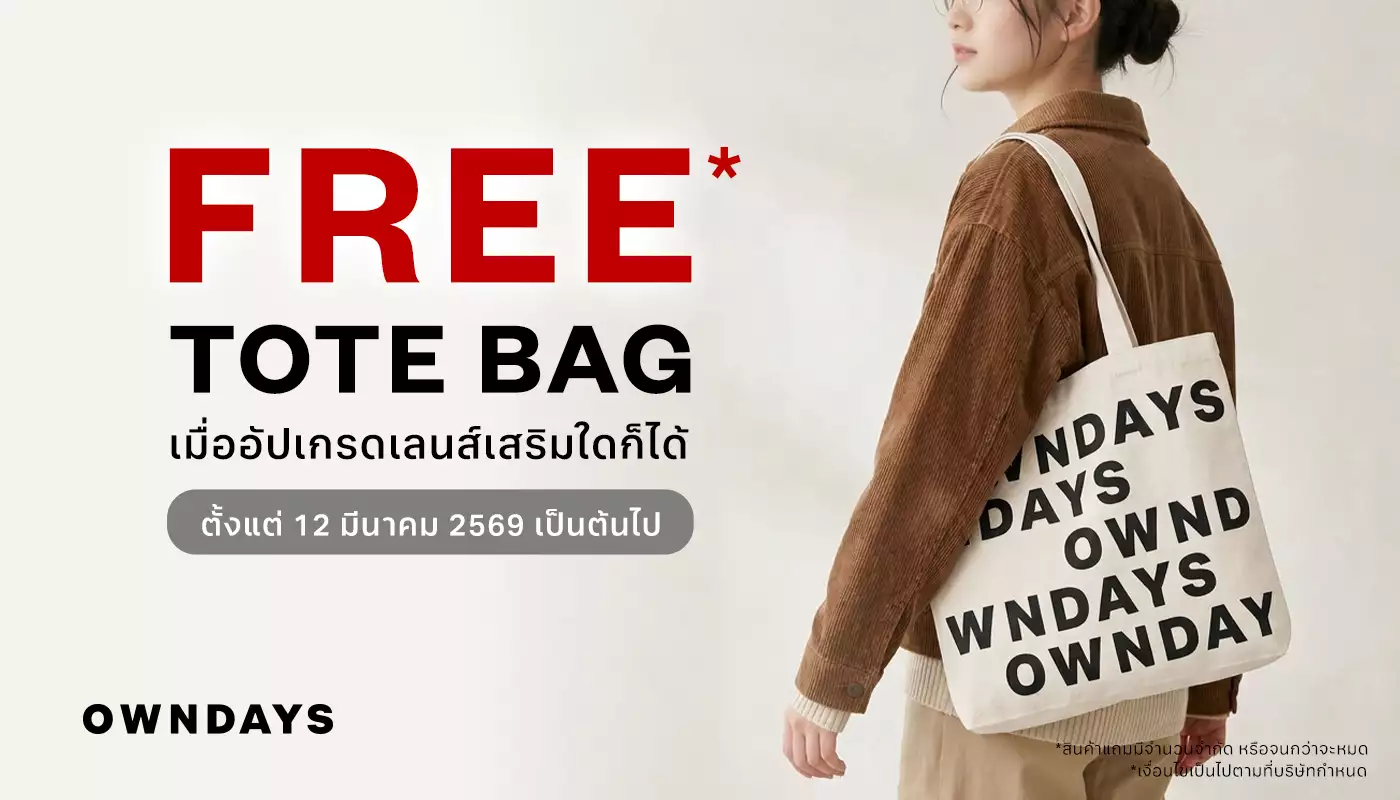 รับฟรี! กระเป๋าผ้าลายพิเศษ OWNDAYS เมื่ออัปเกรดเลนส์เสริมใดก็ได้
