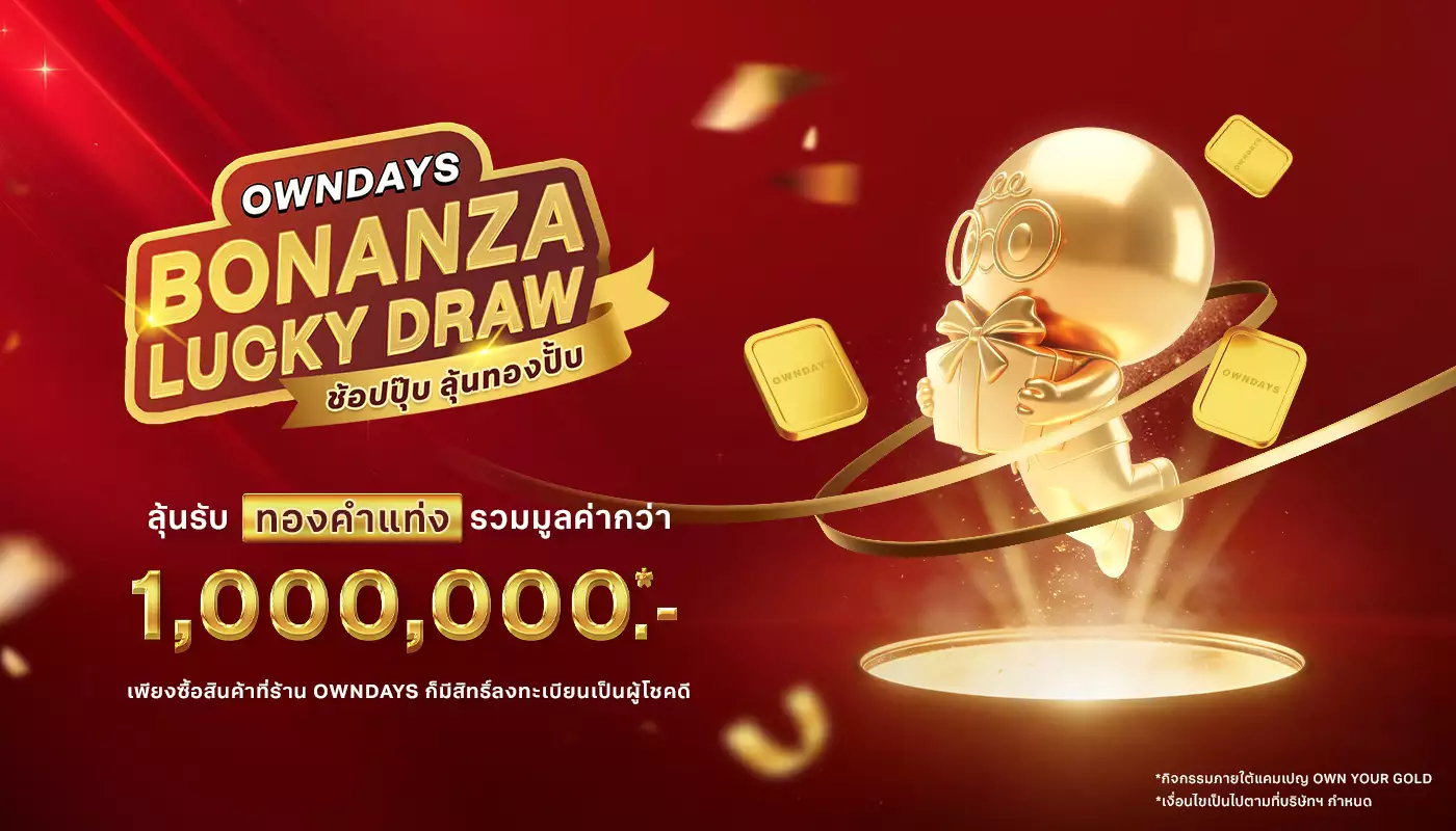 OWNDAYS BONANZA LUCKY DRAW แจกทองคำแท่ง รวมมูลค่ากว่า 1 ล้านบาท!