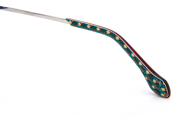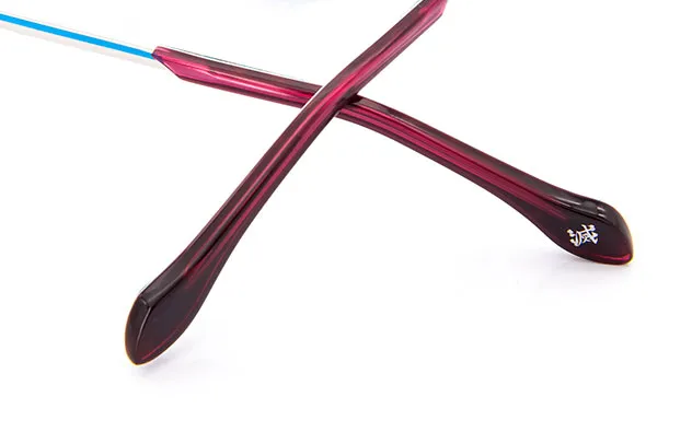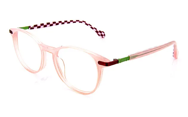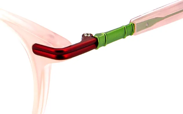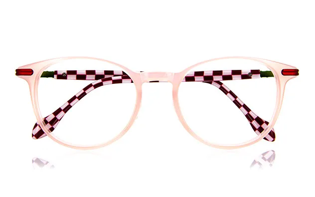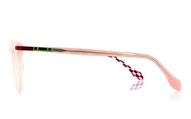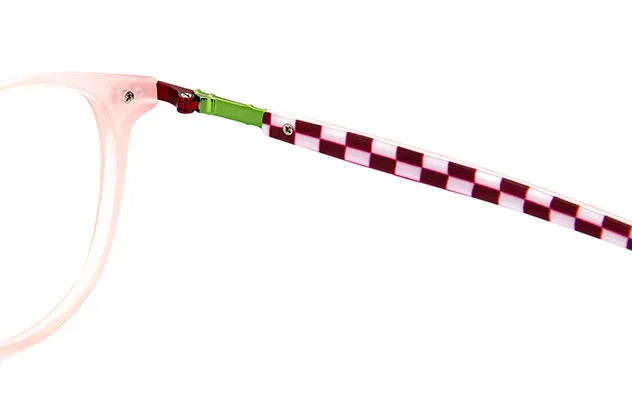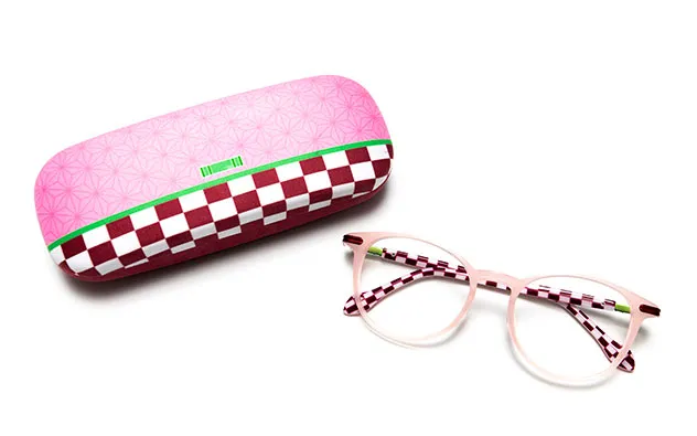 禰豆子の着物のカラーに合わせた優しいピンク色が特徴で、柔らかい印象を与えるボストン型フレーム。テンプル横には、竹をイメージしたメタル素材が使用されており、内側は禰豆子が締めている市松柄の帯を再現しています。華やかな印象を与える、可愛らしい一本です。