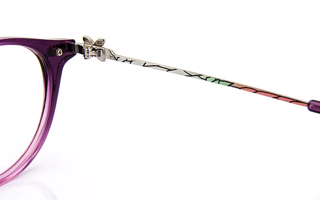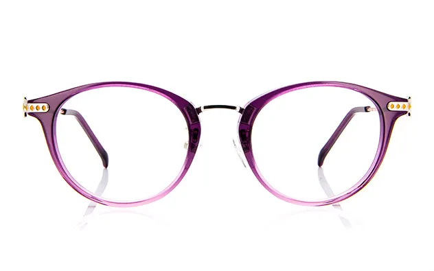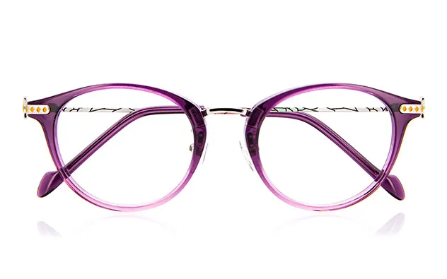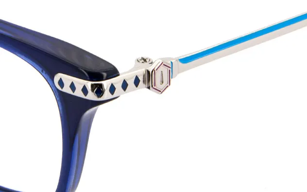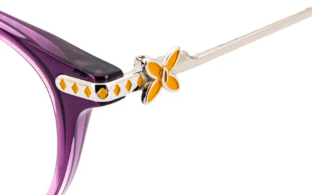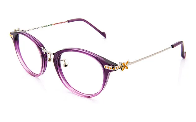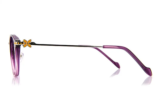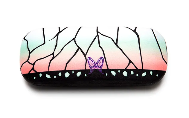 蟲柱の胡蝶しのぶをイメージした鮮やかな紫が魅力的な女性らしいボストン型フレーム。テンプルのメタル部分の内側に、蝶の羽を模した羽織りのデザインを細やかにあしらっています。日輪刀の柄と鍔をイメージした花のデザインが優美でありながらも可愛らしさを忘れない、胡蝶しのぶらしい一本です。
