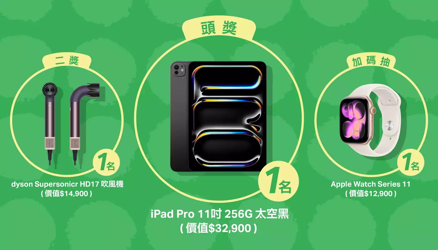 *iPad、dyson、Apple Watch、托特包等贈品無法於中獎當日領取,請告知店舖人員並留下聯絡方式,後續由專人主動聯繫。