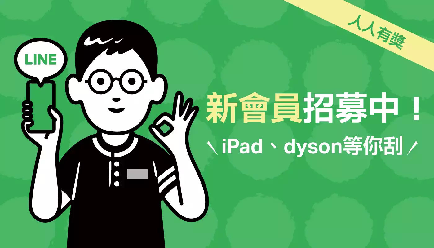 即日起至全台門市加入LINE會員,即可獲得限量刮刮卡!